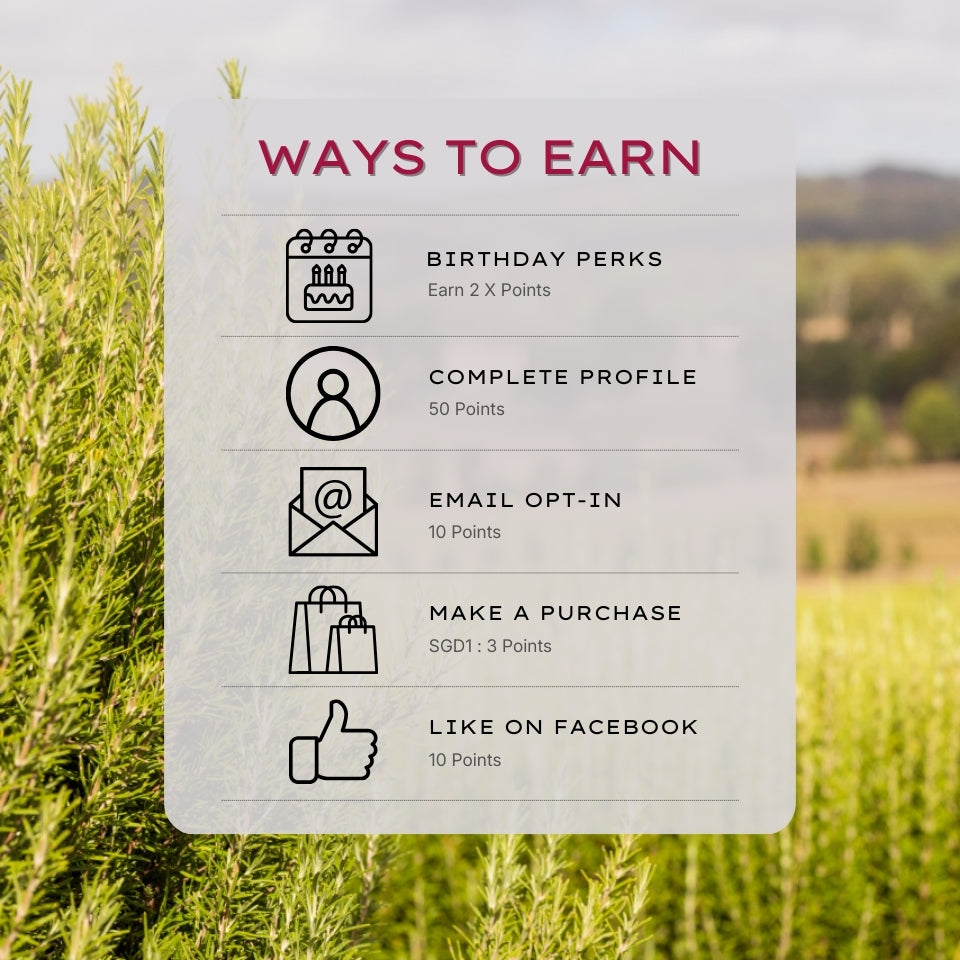 Sign up to earn points as you shop and receive a $10 Welcome Voucher!